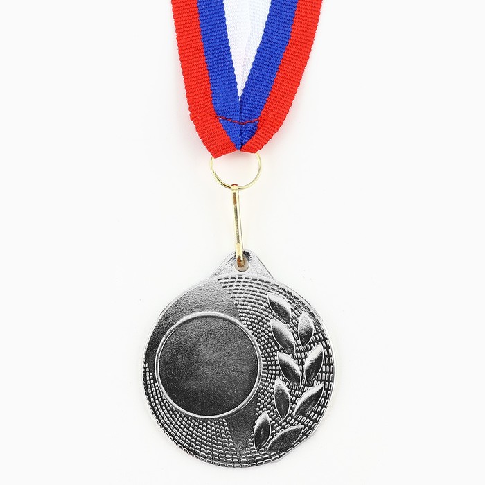 Медаль под нанесение серебро, d=5 см, с лентой, с индивидуальной гравировкой